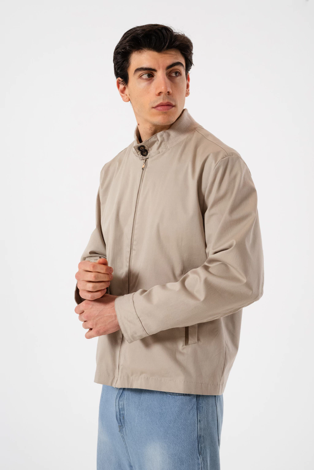 Campera Clásica en Gabardina con Spandex. El interior está forrado con tela del algodón rayado.
